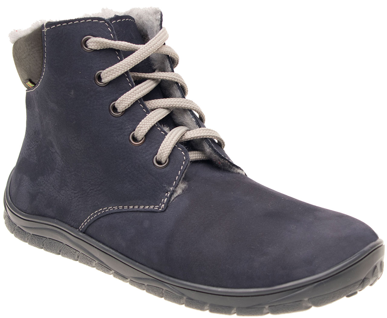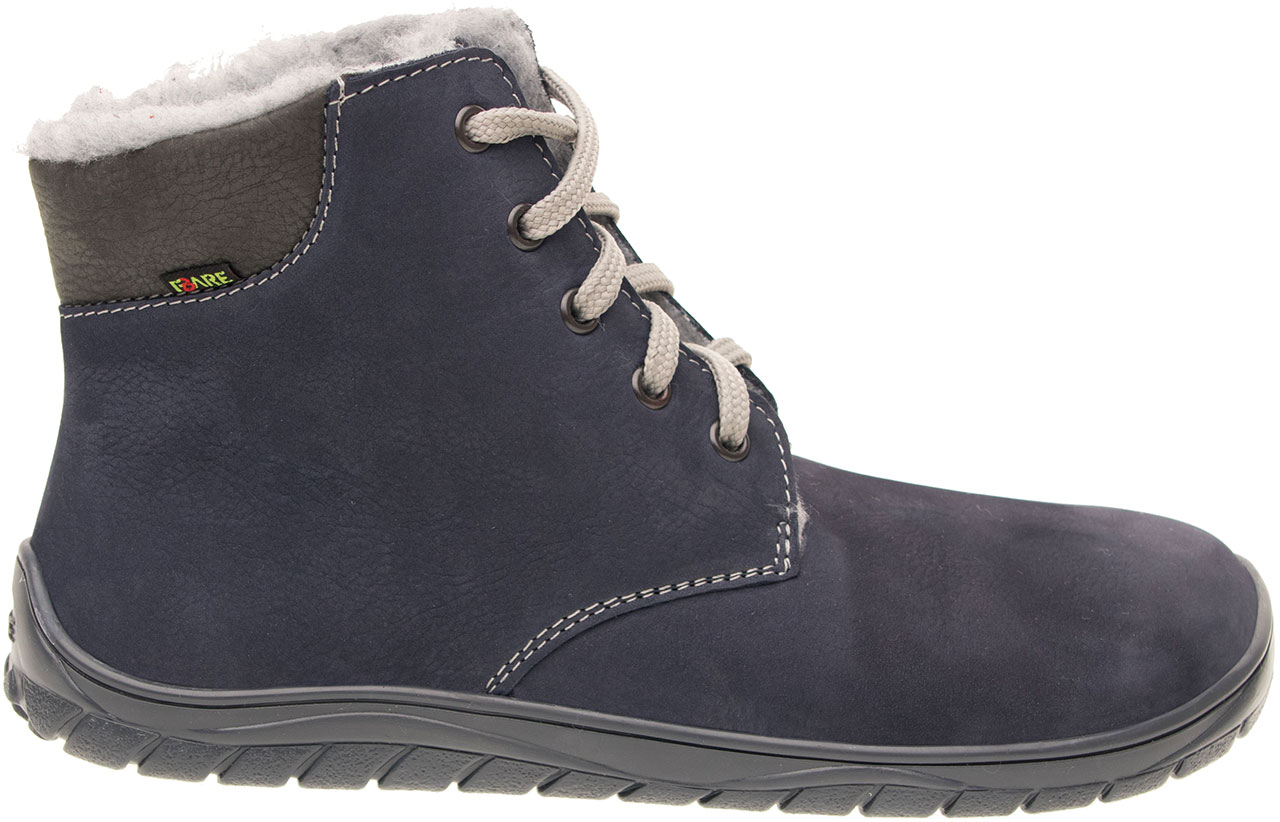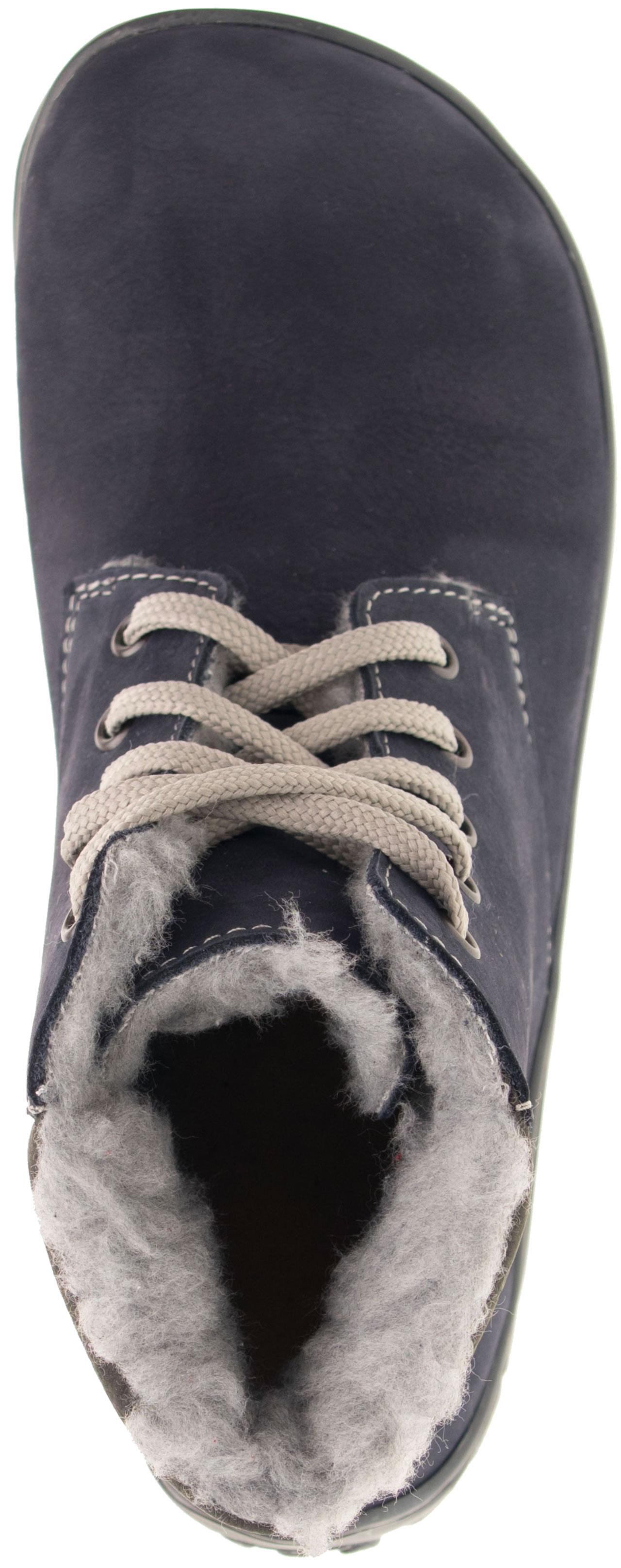 Zimní štróblovaná kotníková obuv, šněrovací. Našívací (štróblovaná) stélka umožňuje lepší flexibilitu boty. Vrchový materiál: přírodní hovězinová useň broušená (nubuk). Podšívka je zimní s hřejivým, středně dlouhým vlasem, stélka je vyrobena z vlny MERINO. Podešev je vyrobena z termokaučuku, jehož složení splňuje parametry pro používání v zimním období.