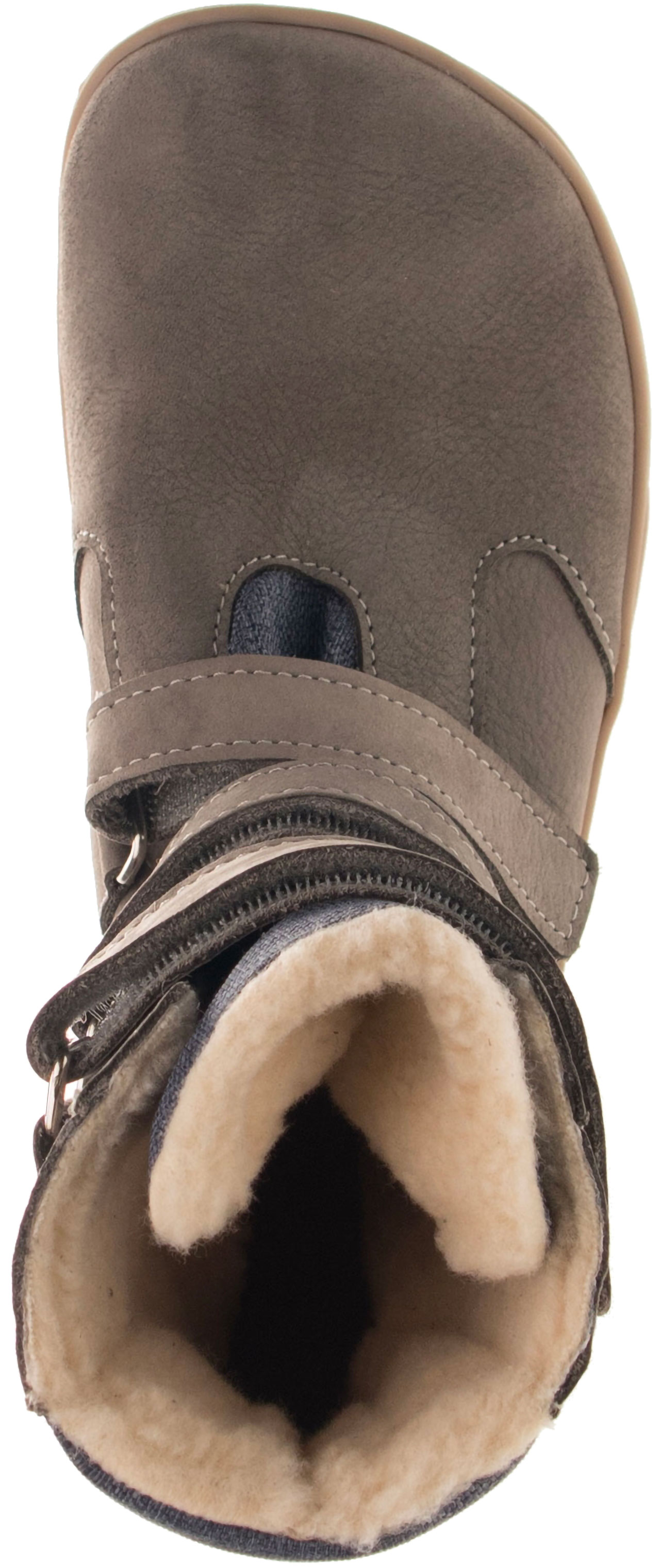 Zimní štróblovaná polovysoká obuv s membránou a se zapínáním na suchý zip. Našívací (štróblovaná) stélka umožňuje lepší flexibilitu boty. Vrchový materiál: přírodní hovězinová useň broušená (nubuk) v kombinaci s textilem.