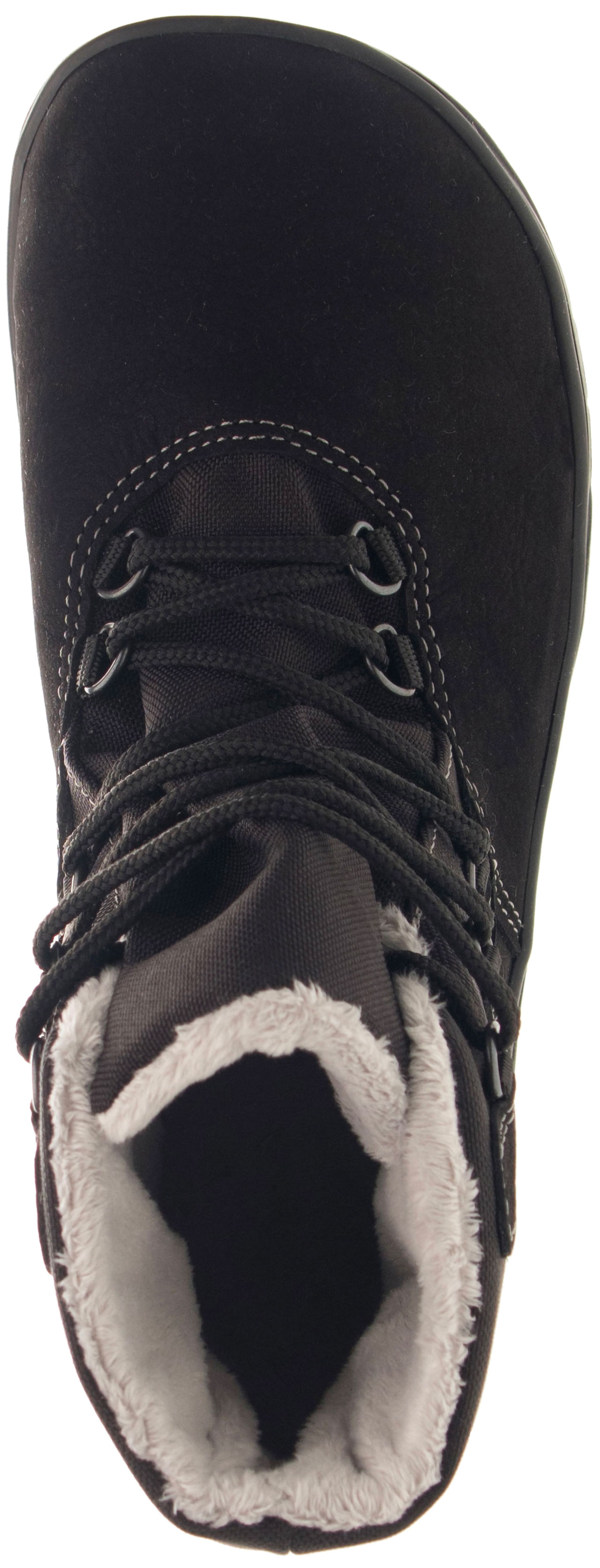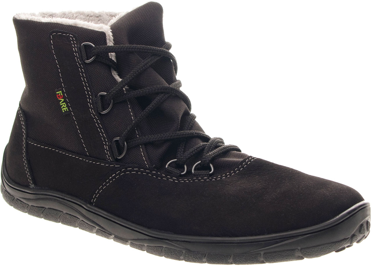 Zimní štróblovaná kotníková obuv, šněrovací. Našívací (štróblovaná) stélka umožňuje lepší flexibilitu boty. Vrchový materiál: přírodní hovězinová useň broušená (nubuk) v kombinaci s textilem.
