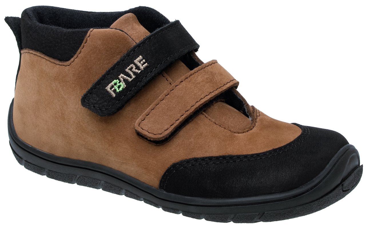 Svršek z pravé hovězinové kůže typu nubuk poskytuje dostatečnou odolnost a zároveň příjemný pocit při nošení. Anatomický barefoot tvar nabízí dostatek prostoru pro prsty a umožňuje jejich přirozenou práci při chůzi. Střih je vhodný pro nízký a středně vysoký nárt a úzkou patu, což pomáhá správnému usazení nohy v botě bez zbytečného tlaku.