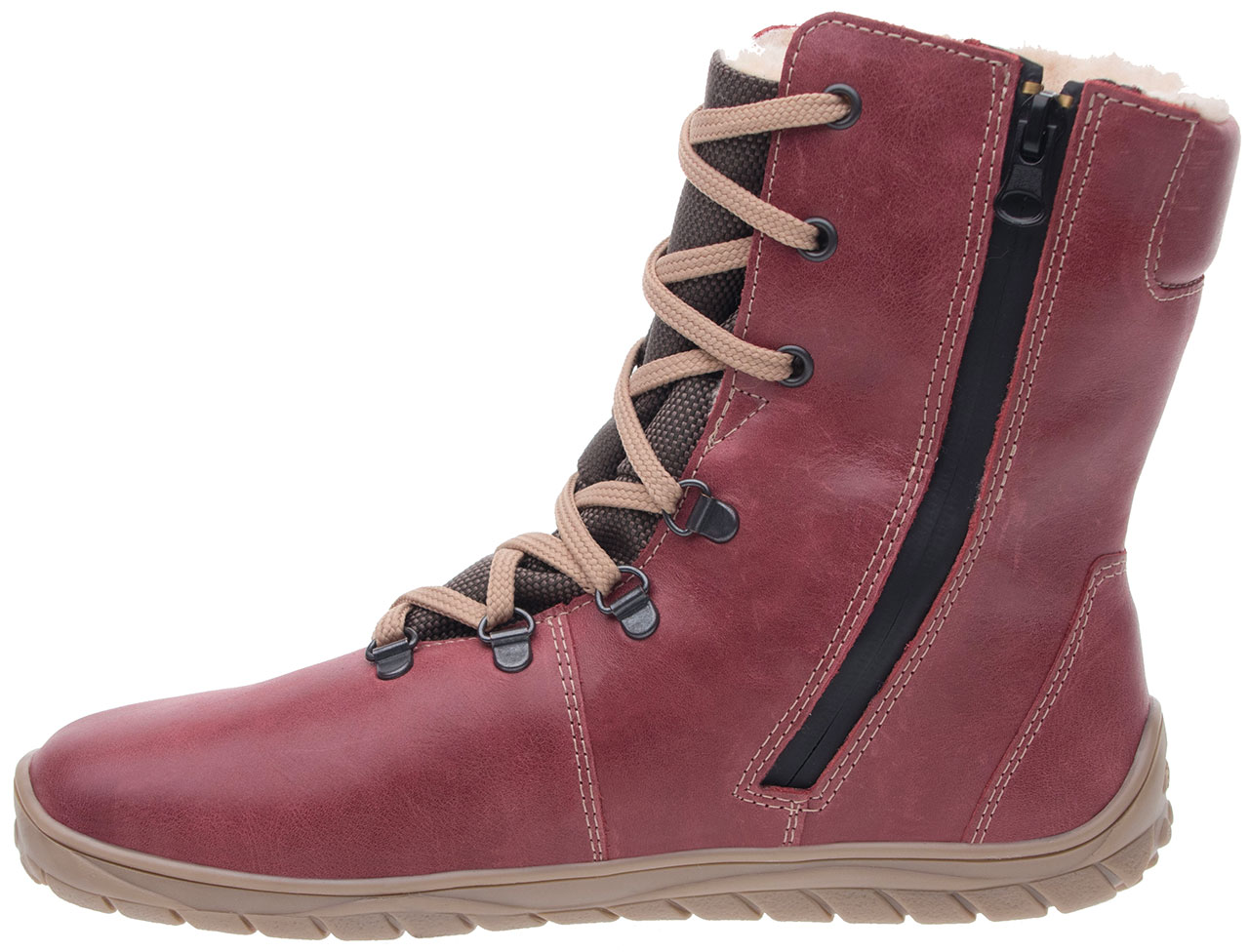 Zimní štróblovaná polovysoká obuv, šněrovací, s bočním zipem. Našívací (štróblovaná) stélka umožňuje lepší flexibilitu boty. Vrchový materiál: přírodní hovězinová useň lícová v kombinaci s textilem. Podšívka je zimní s hřejivým, středně dlouhým vlasem, stélka je vyrobena z vlny MERINO. Podešev je vyrobena z termokaučuku, jehož složení splňuje parametry pro používání v zimním období.
