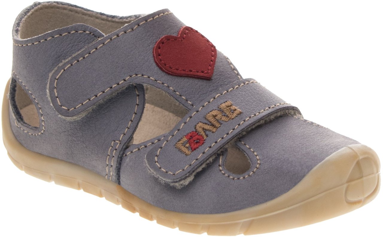 Dětská štróblovaná obuv na suchý zip. Našívací (štróblovaná) stélka umožňuje lepší ohyb boty. Vrchový materiál: hovězinová useň broušená (nubuk).Podšívka: textilní materiál s výbornými sacími schopnostmi. Podešev je vyrobena z termokaučuku, který je velmi flexibilní příčně, ale i podélně.