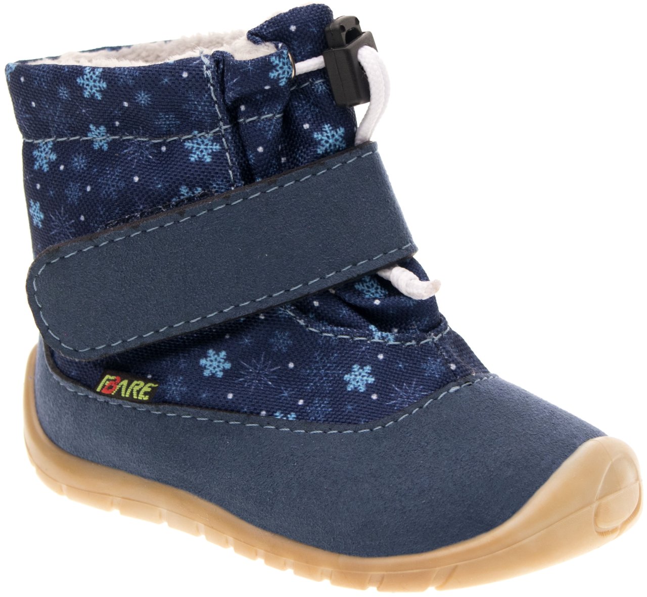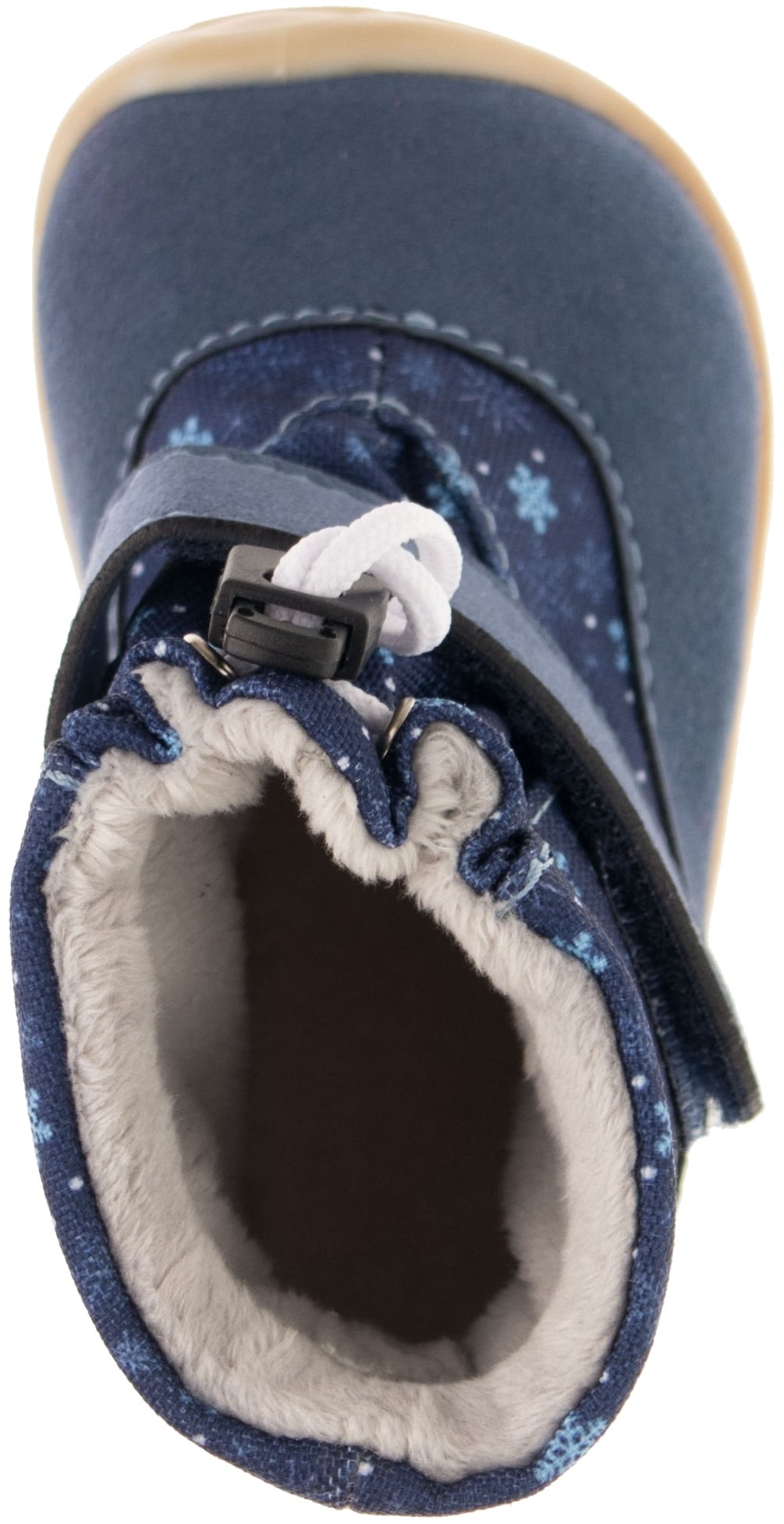 Zimní štróblovaná kotníčková obuv se zapínáním na gumolanko a suchý zip. Našívací (štróblovaná) stélka umožňuje lepší ohyb boty. Vrchový materiál: textil. Podšívka: jemný zimní plyš. Podešev je vyrobena z termokaučuku, který je velmi flexibilní příčně, ale i podélně. Obuv je opatřena nástřikem proti nasákavosti vody, obuv není vybavena membránou.