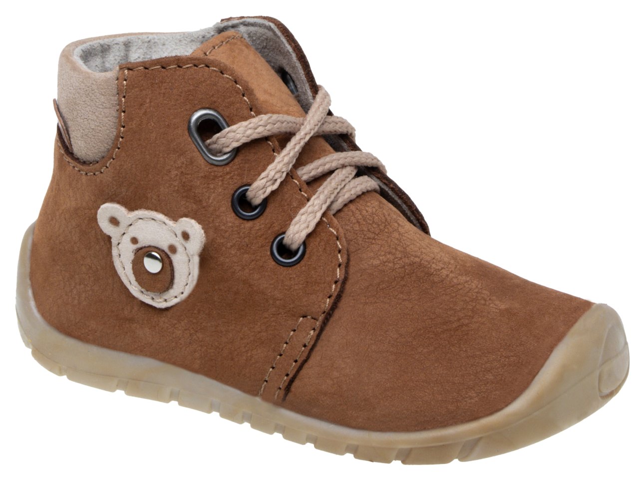 Dětská obuv na šněrování. Našívací (štróblovaná) stélka umožňuje lepší ohyb boty. Vrchový materiál useň. Podšívka z textilního materiálu s výbornými sacími schopnostmi. Předností této obuvi je naše vlastní výroba podešví - materiál TPE, která se na obuv nanáší vstříknutím a tudíž je velmi flexibilní příčně, ale i podélně.