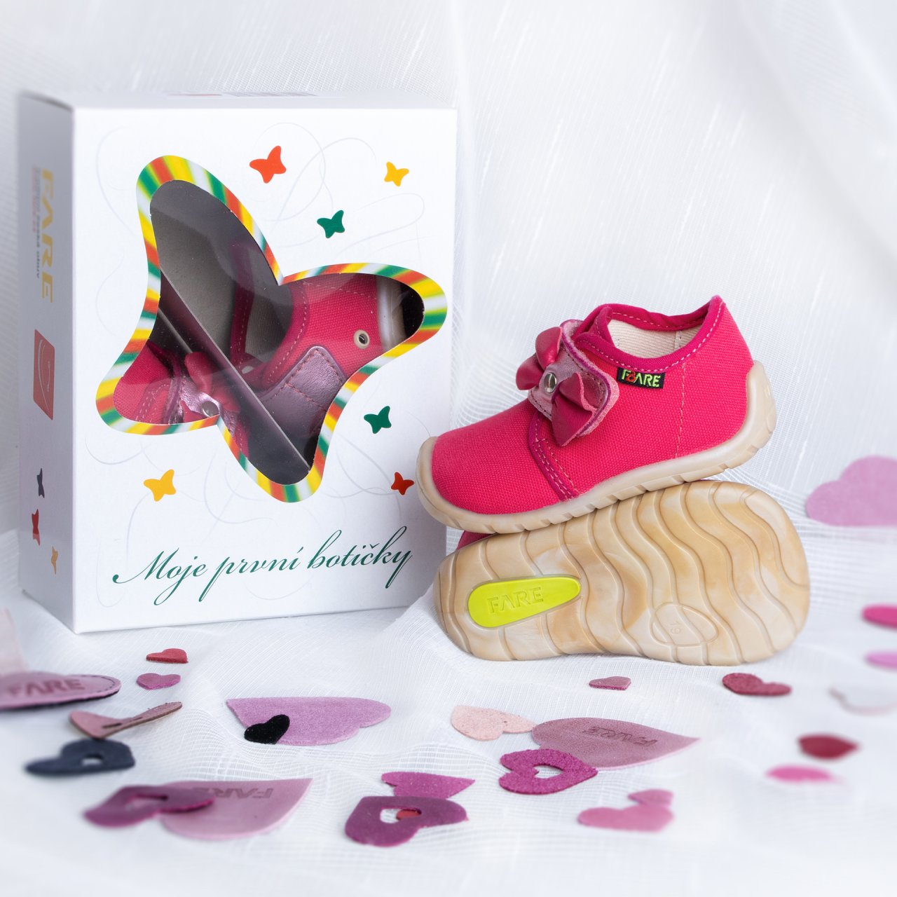 Ultratenká a mimořádně měkká konstrukce podporuje přirozený vývoj dětského chodidla, cit pro povrch a svobodný pohyb nožky. Podešev byla navržena ve FARE ve Valašských Kloboukách s maximálním důrazem na bezpečnost, funkčnost a barefoot principy.