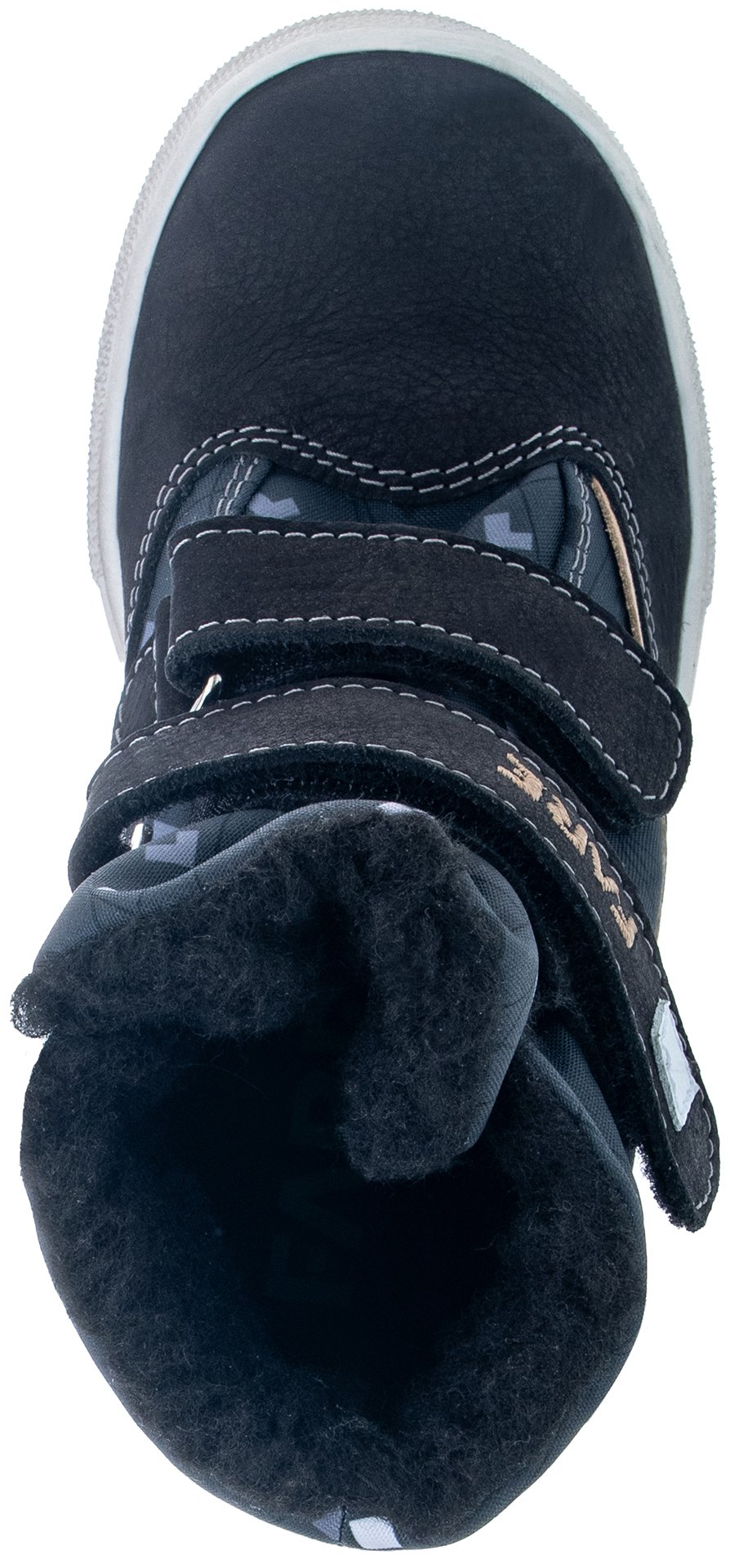 Zimní štróblovaná kotníčková obuv se zapínáním na suchý zip. Našívací (štróblovaná) stélka umožňuje lepší flexibilitu boty. Vrchový materiál: hovězinová useň boušená (nubuk) v kombinaci s textilem. Podšívka je zimní s hřejivým středně dlouhým vlasem.