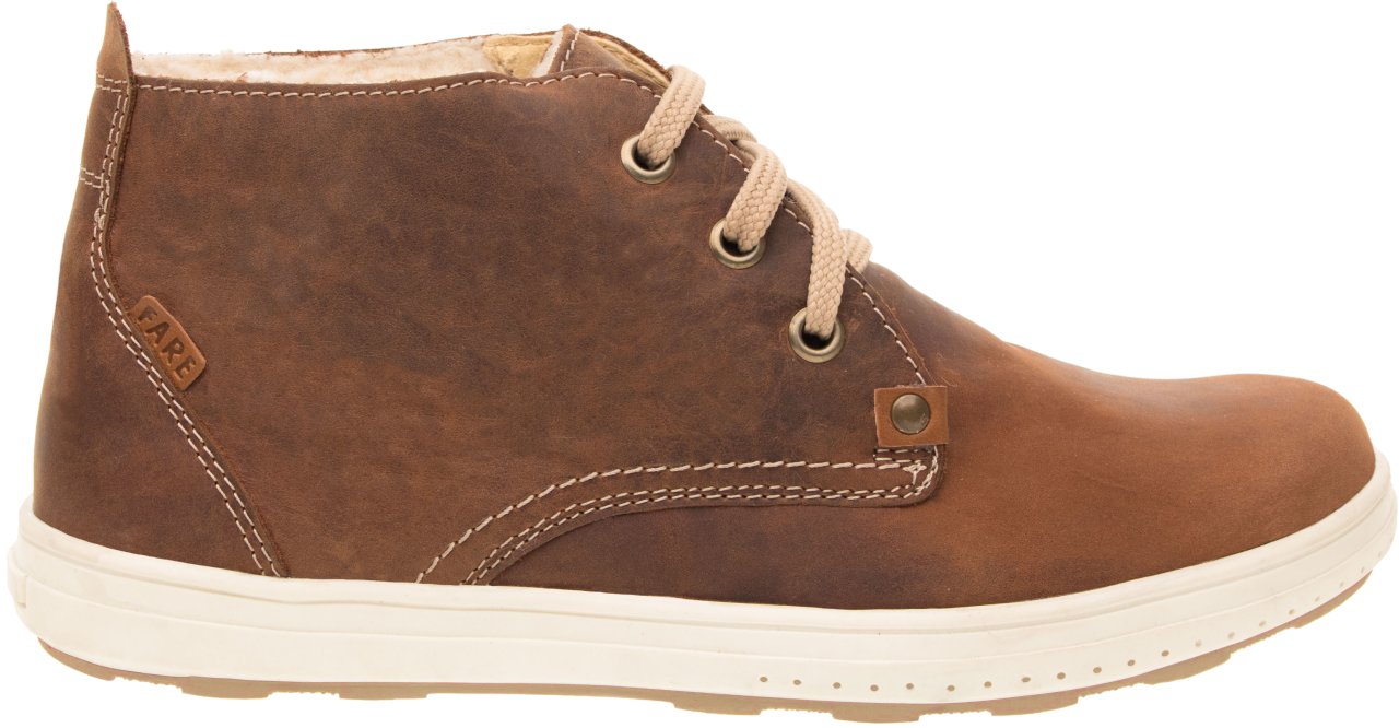 Zimní pevná kotníčková obuv, šněrovací. Vrchový materiál: přírodní hovězinová useň lícová hladká. Podšívka je zimní s hřejivým, středně dlouhým vlasem. Podešev je z termoplastického kaučuku, jehož složení splňuje parametry pro používání v zimním období. Předností je vyjímatelná vkládací stélka a pevný opatek i špice.