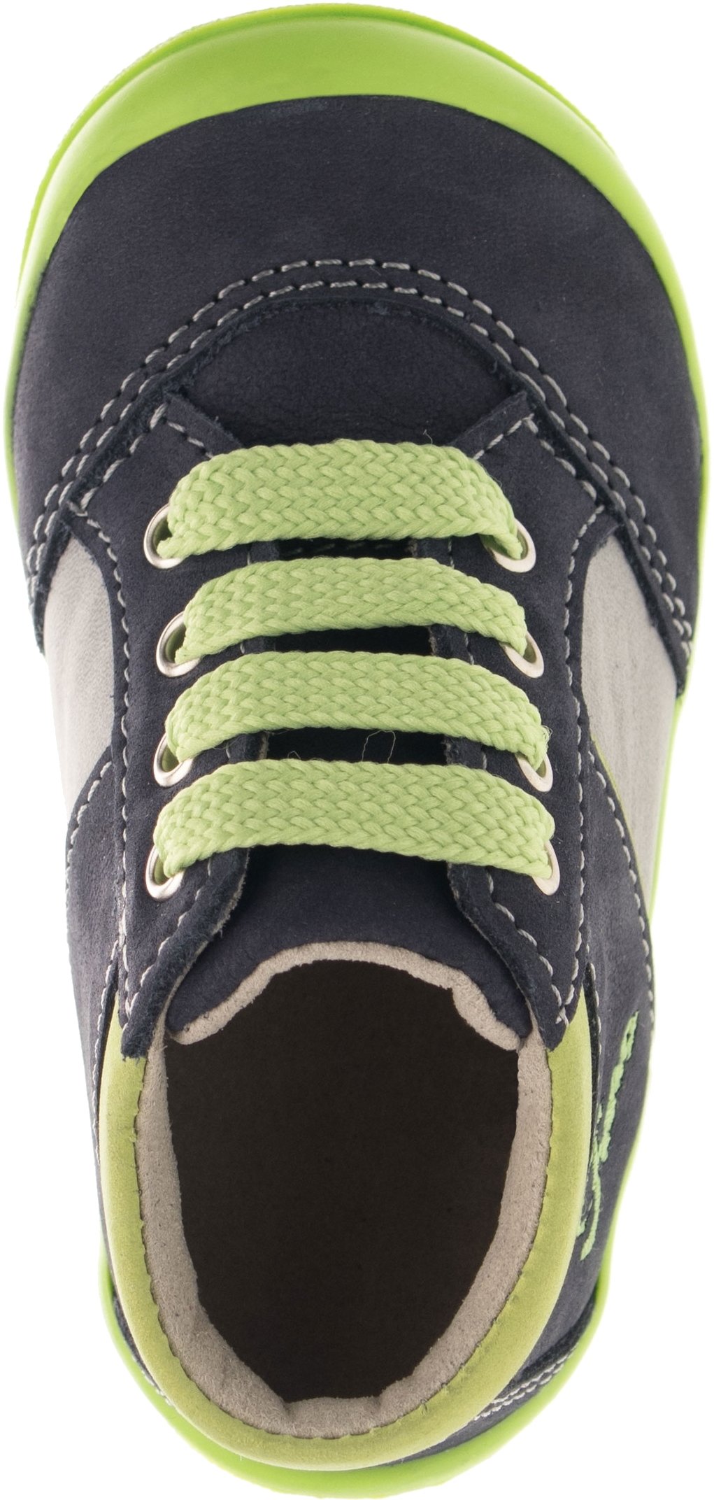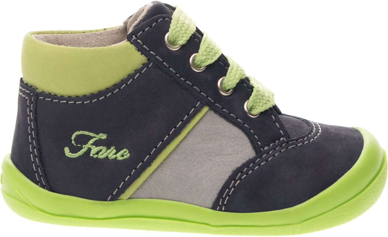 Pevná, kotníčková obuv, šněrovací. Vrchový materiál - Vrchový materiál - pravá kůže hladká v kombinaci s nubukem. Podšívka - netkaná textilie. Podešev je z termoplastického kaučuku s módní povrchovou úpravou. Předností je vyjímatelná vkládací stélka a pevný opatek i špice.