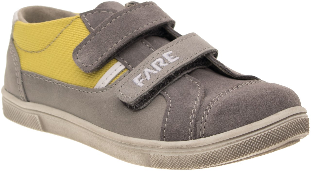 Celoroční vycházková nízká obuv se zapínáním na suchý zip. Vrchový materiál: hovězinová štípenka v kombinaci s hovězinovou usní hladkou a textilem. Podšívka: textilní s výbornými sacími schopnostmi. Podešev je z termoplastického kaučuku s módním dezénem. Předností je měkká výplň límečku, vyjímatelná vkládací stélka a pevný opatek i špice.