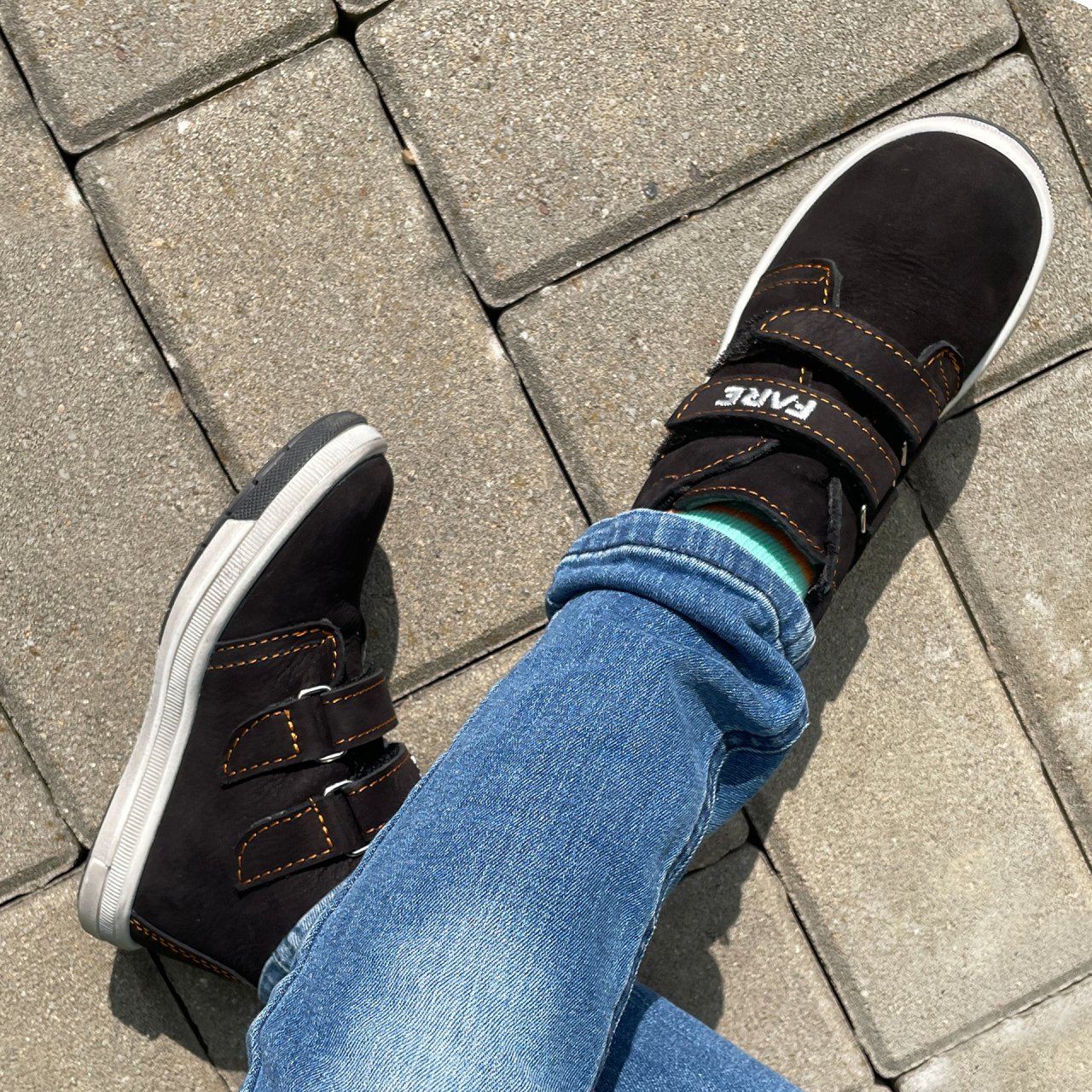 Celoroční pevná kotníčková obuv se zapínáním na suchý zip. Vrchový materiál: přírodní hovězinová useň broušená (nubuk). Podšívka: textilní materiál s výbornými sacími schopnostmi. Podešev je vyrobena z termoplastického kaučuku s módním dezénem. Předností je měkká výplň límečku, vyjímatelná vkládací stélka a pevný opatek i špice.