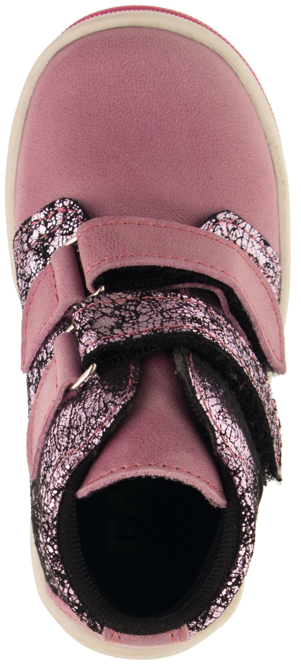Celoroční pevná kotníčková obuv se zapínáním na suchý zip. Vrchový materiál: přírodní hovězinová useň lícová. Podšívka: textilní materiál s výbornými sacími schopnostmi. Podešev je vyrobena z termoplastického kaučuku s módním dezénem. Předností je měkká výplň límečku, vyjímatelná vkládací stélka a pevný opatek i špice.