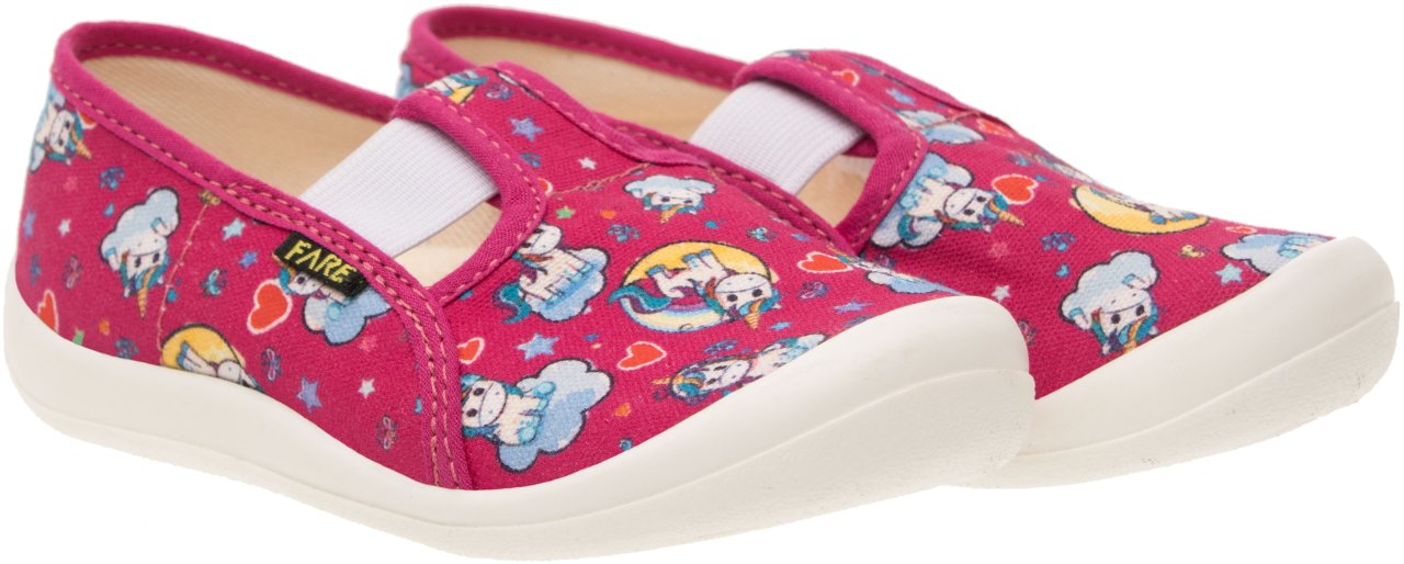 Podešev FARESOLE AMY poskytuje potřebnou oporu a odolnost při běžném používání. Zapínání na gumičku usnadňuje obouvání i zouvání a podporuje samostatnost dítěte při každodenním nošení.Low slippers from the brand FARE KLASIK.
