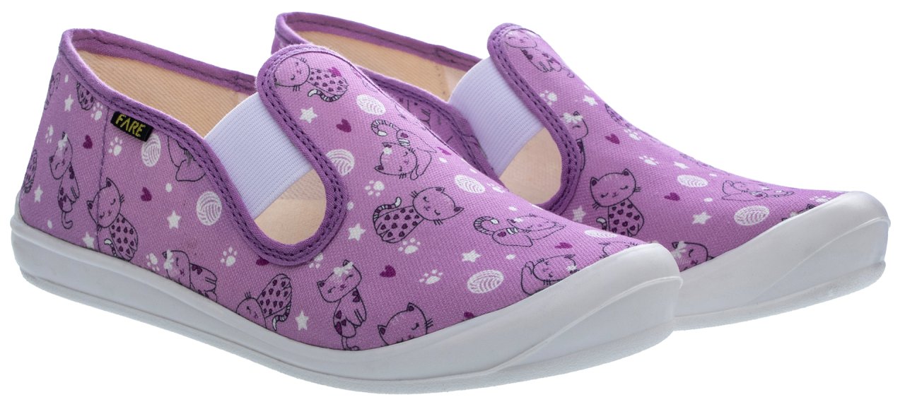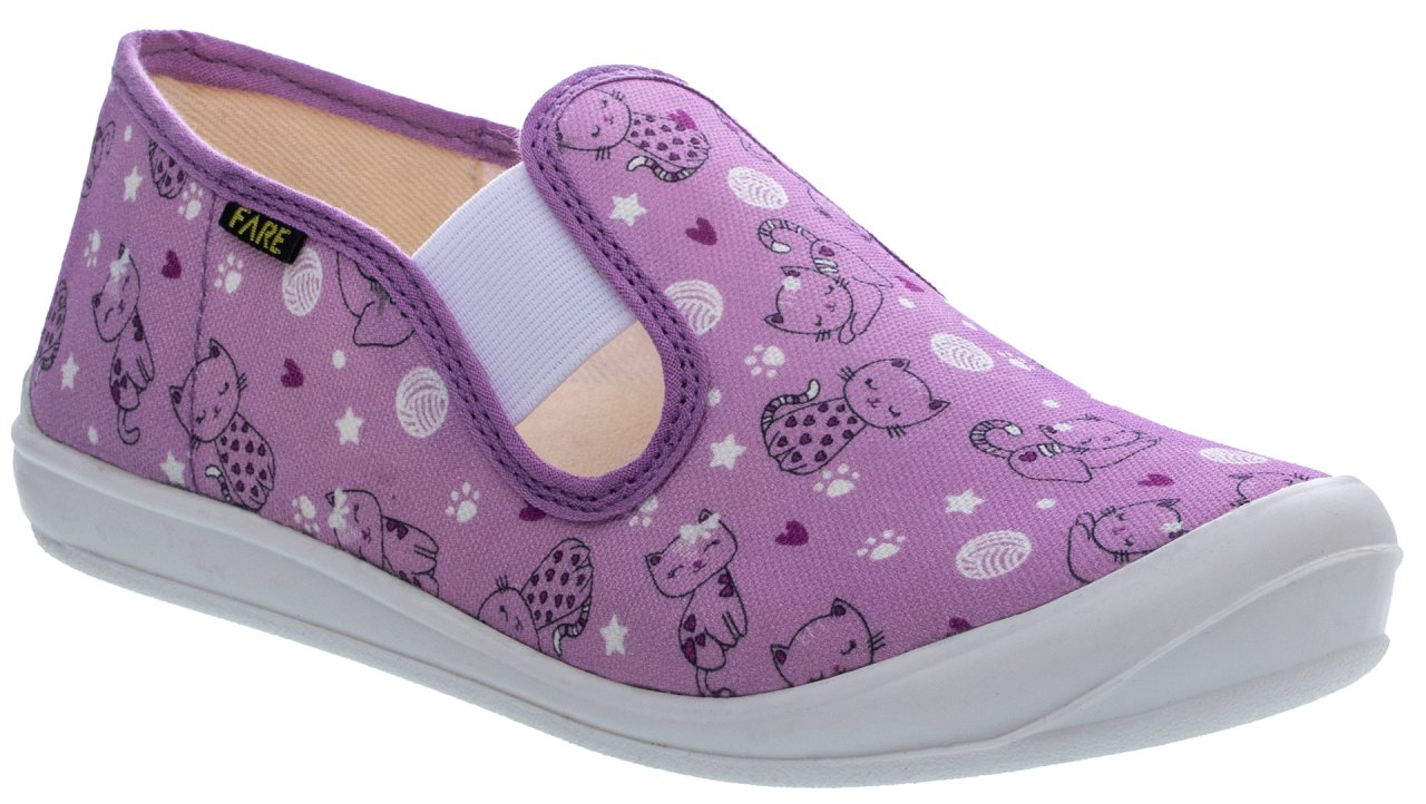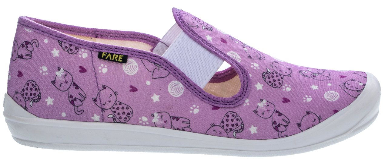 Podešev FARESOLE AMY poskytuje potřebnou oporu a odolnost při běžném používání. Zapínání na gumičku usnadňuje obouvání i zouvání a podporuje samostatnost dítěte při každodenním nošení.Low slippers from the brand FARE KLASIK.