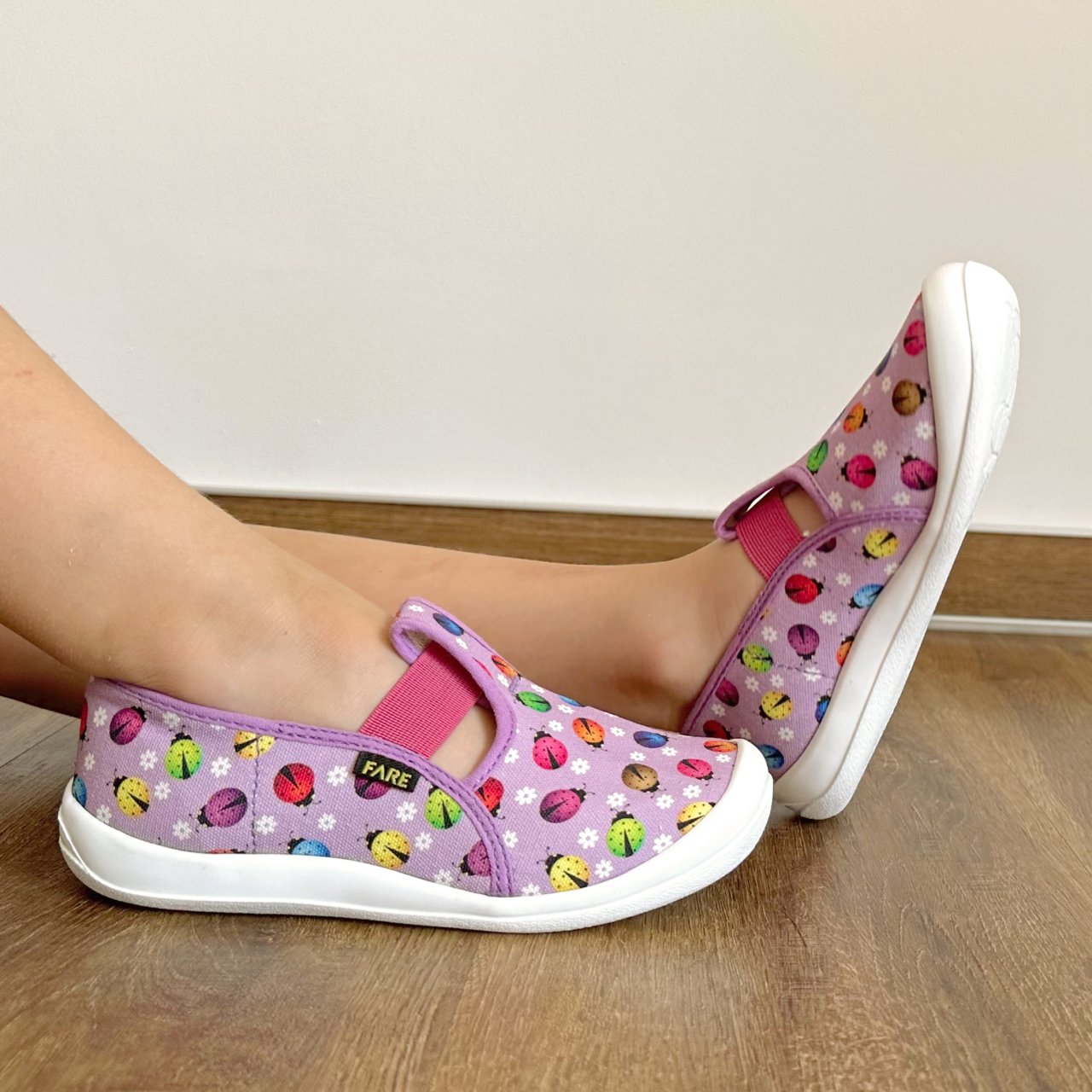 Podešev FARESOLE AMY poskytuje potřebnou oporu a odolnost při běžném používání. Zapínání na gumičku usnadňuje obouvání i zouvání a podporuje samostatnost dítěte při každodenním nošení.Low slippers from the brand FARE KLASIK.