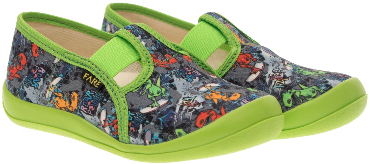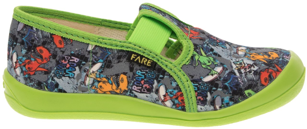 Podešev FARESOLE AMY poskytuje potřebnou oporu a odolnost při běžném používání. Zapínání na gumičku usnadňuje obouvání i zouvání a podporuje samostatnost dítěte při každodenním nošení.Low slippers from the brand FARE KLASIK.