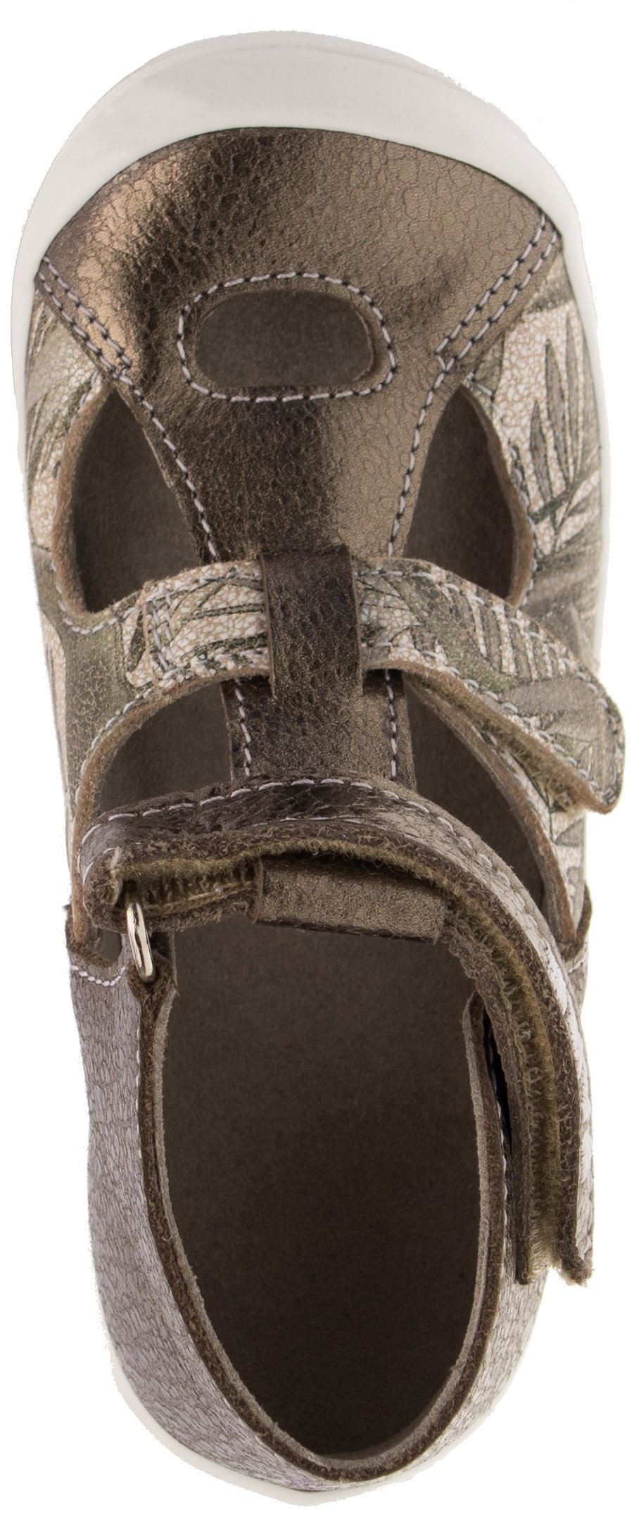 Letní obuv se zapínáním na suchý zip. Vrchový materiál: přírodní hovězinová useň lícová. Podšívka: textilní materiál s výbornými sacími schopnostmi. Podešev je z termoplastického kaučuku, barevně sladěná s vrchem. Předností je vyjímatelná vkládací stélka, pevný opatek a  po rozepnutí maximální otevřenost obuvi.