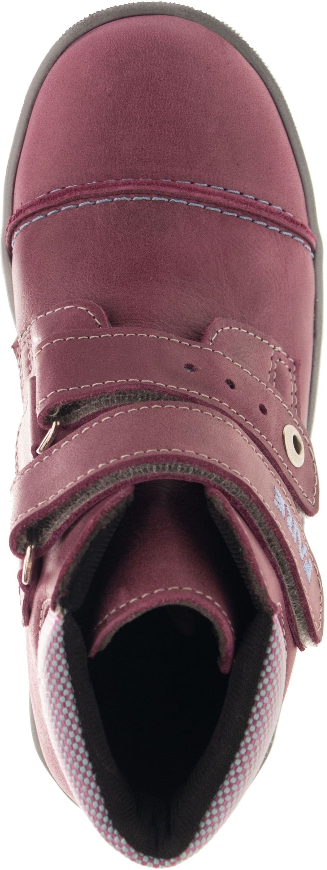 Celoroční, vycházková obuv kotníčková na velcro. Vrchový materiál - pravá kůže hladká. Podšívka je textilní s velmi dobrými sacími schopnostmi. Podešev je z termoplastického kaučuku , v módním designu. Obuv má pevný opatek i špici, předností je vyjímatelná vkládací stélka a široký, vybandážovaný límeček.