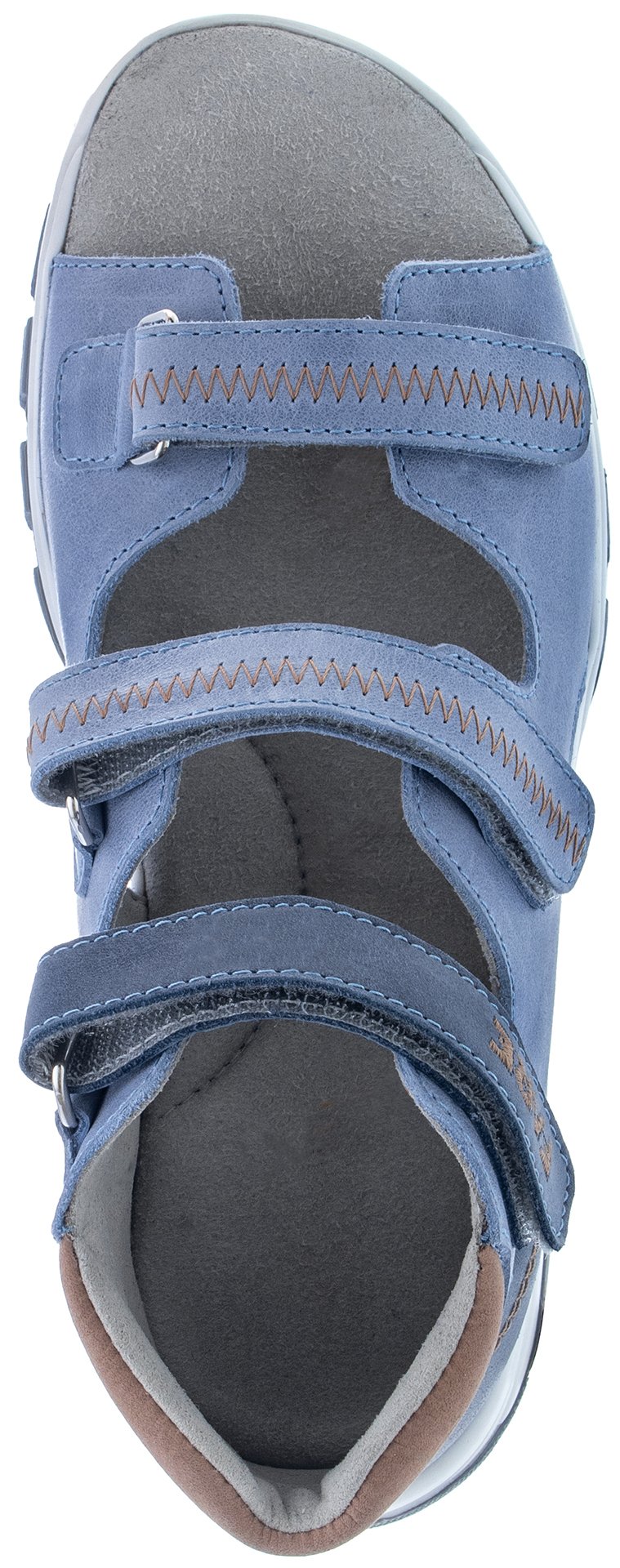 Letní sandálová obuv bez špice se zapínáním na suchý zip. Vrchový materiál: přírodní hovězinová useň lícová hladká. Podšívka: patní část a stélka jsou vyrobeny z netkané textilie, přední boční díly z hovězinové usně. Podešev je z termoplastického kaučuku. Předností je vypolstrovaná stélka, regulovatelnost obuvi přes nárt, pevný opatek a výška paty, která je v souladu s podmínkami zdravého obouvání.