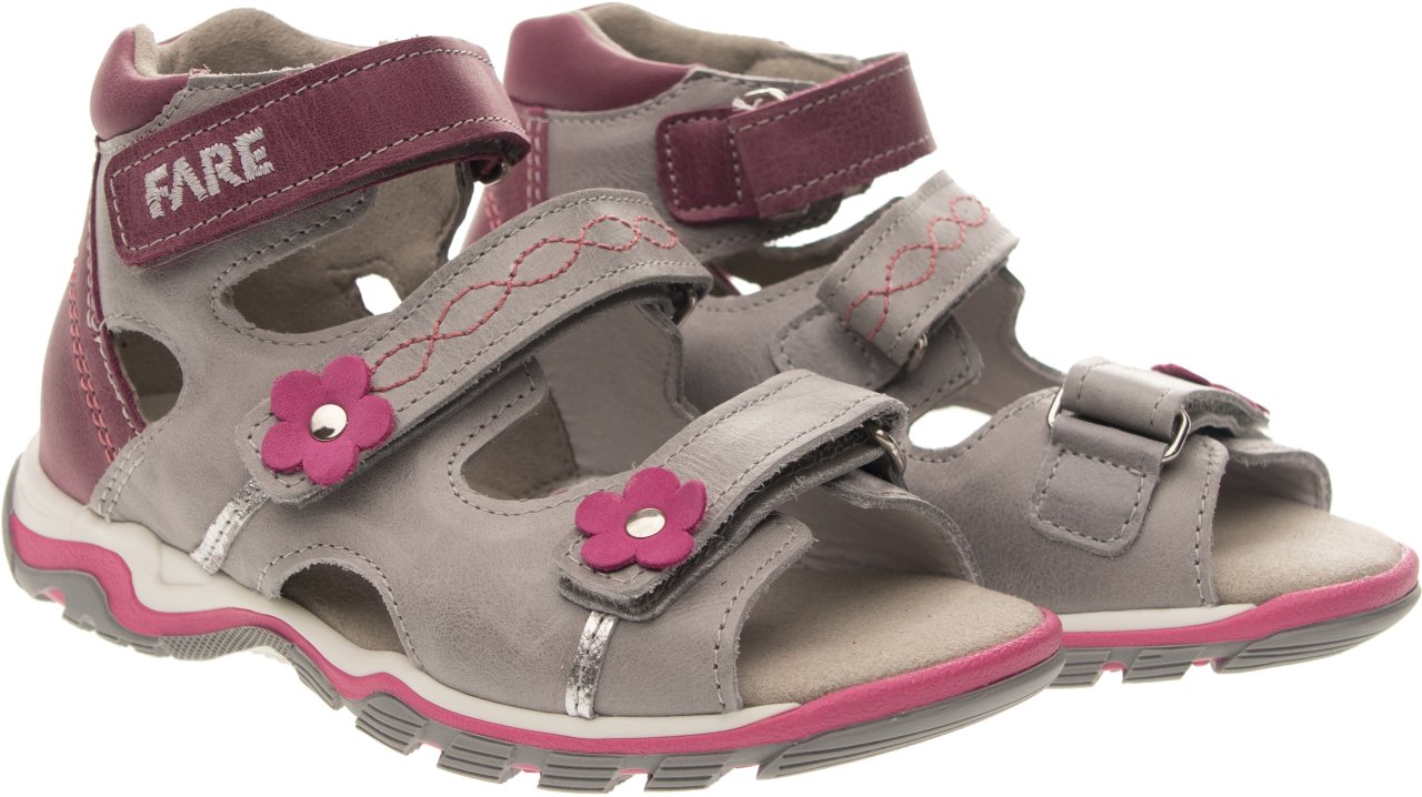 Sandálová obuv bez špice se zapínáním na velcro. Vrchový materiál - pravá kůže hladká. Podšívka -patní část a stélka je vyrobena z netkané textilie a přední boční díly z pravé kůže. Podešev je z termoplastického kaučuku. Předností je vypolstrovaná stélka, regulovatelnost obuvi přes nárt, pevný opatek a výška paty, která je v souladu s podmínkami zdravého obouvání.