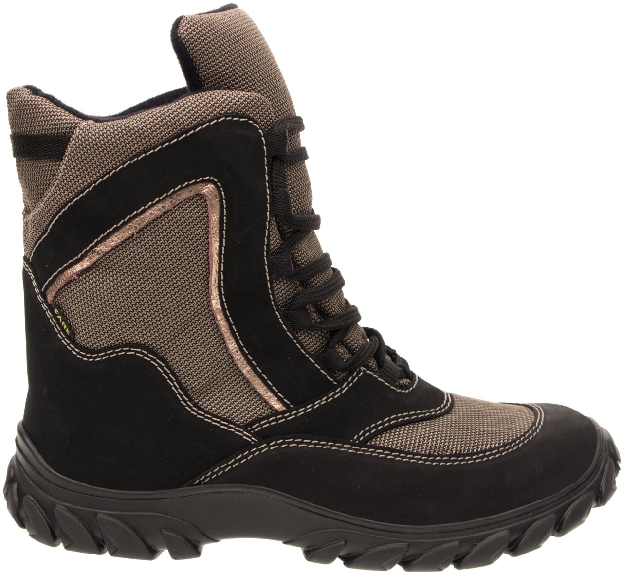 Zimní polovysoká obuv s membránou (FARE-TEX), šnerovací. Vrchový materiál: hovězí useň broušená (nubuk) v kombinaci s textilem. Podšívka je zimní s hřejivým, středně dlouhým vlasem. Díky speciální klima-membráně, která je zabudována mezi vrchovým materiálem a podšívkou, zůstává noha uživatele suchá a dobře klimatizovaná. Podešev je vyrobena z termoplastického kaučuku, jehož složení splňuje parametry pro užívání v zimním období. Vyvýšení podešve v přední části chrání špici při běžném zakopávání. Předností je také měkké polstrování bočních částí a límečku, vyjímatelná vkládací stélka a pevný opatek.