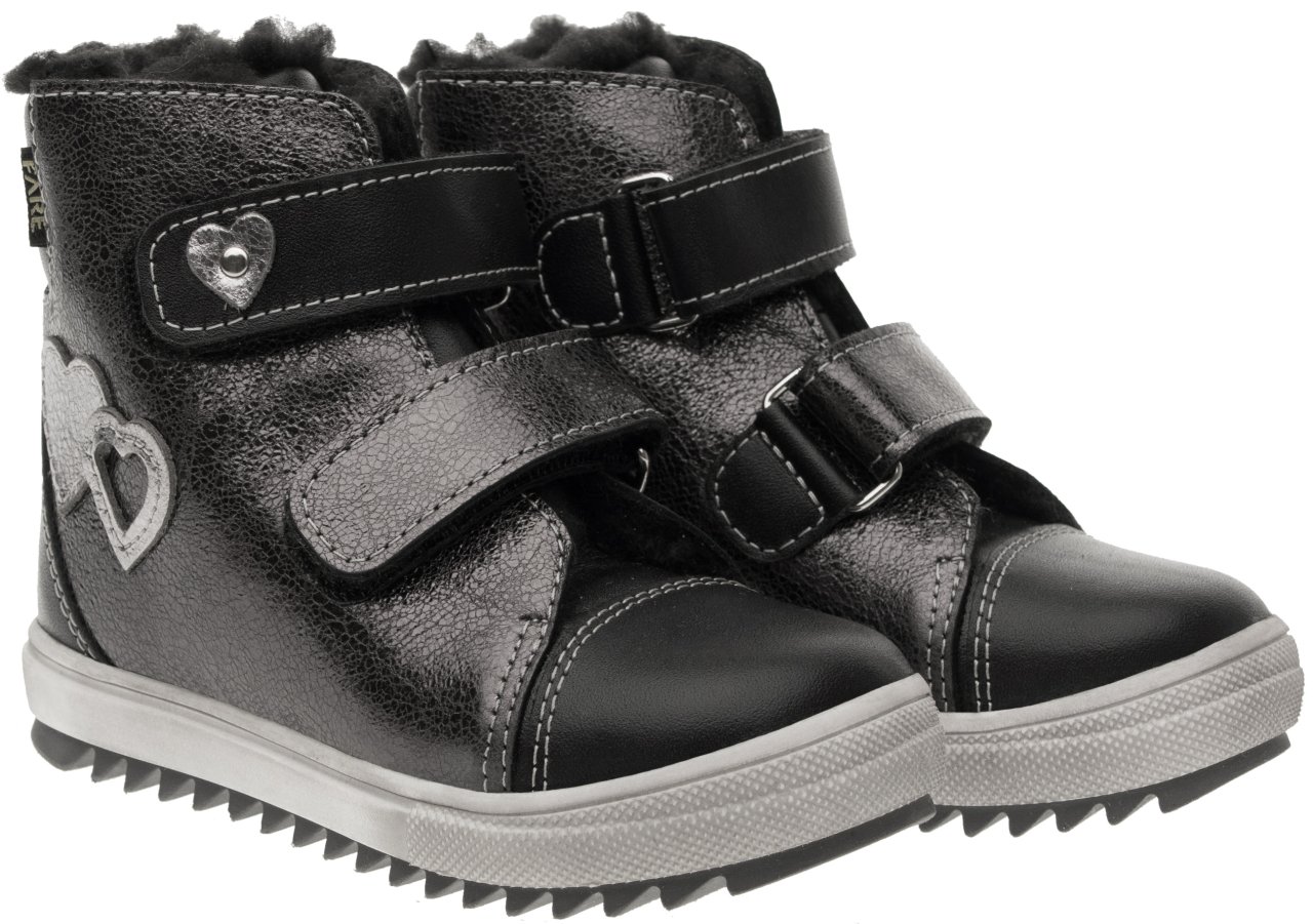 Kvalitní kotníčková kožená obuv, která okouzlí nejen svým stylovým vzhledem, ale i kvalitním zpracováním a promyšleným střihem. Boty jsou ozdobeny srdíčky. Díky snadnému zapínání na suché zipy zvládnou děti boty pohodlně obout samy. Zimní podšívka s hřejivým středně dlouhým vlasem zajistí, že dětská chodidla zůstanou v teple a pohodlí i během chladných dní.