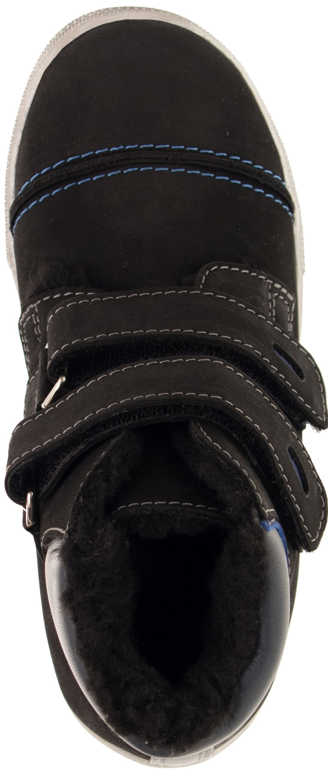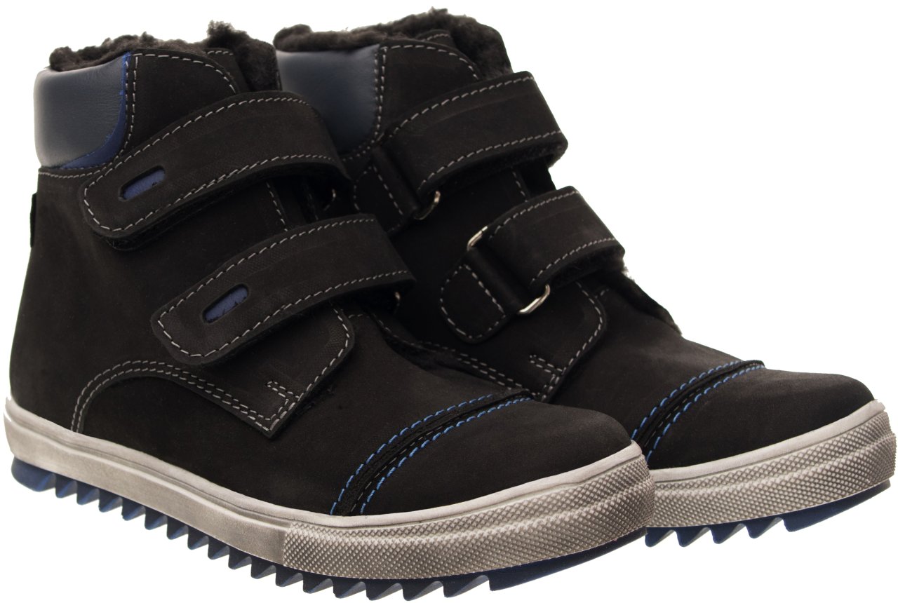 Zimní kotníčková obuv se zapínáním na suchý zip. Vrchový materiál: přírodní hovězinová useň broušená (nubuk). Podšívka je zimní s hřejivým, středně dlouhým vlasem. Podešev je z termoplastického kaučuku, jehož složení splňuje parametry pro používání v zimním období. Předností je vyjímatelná vkládací stélka a pevný opatek i špice.
