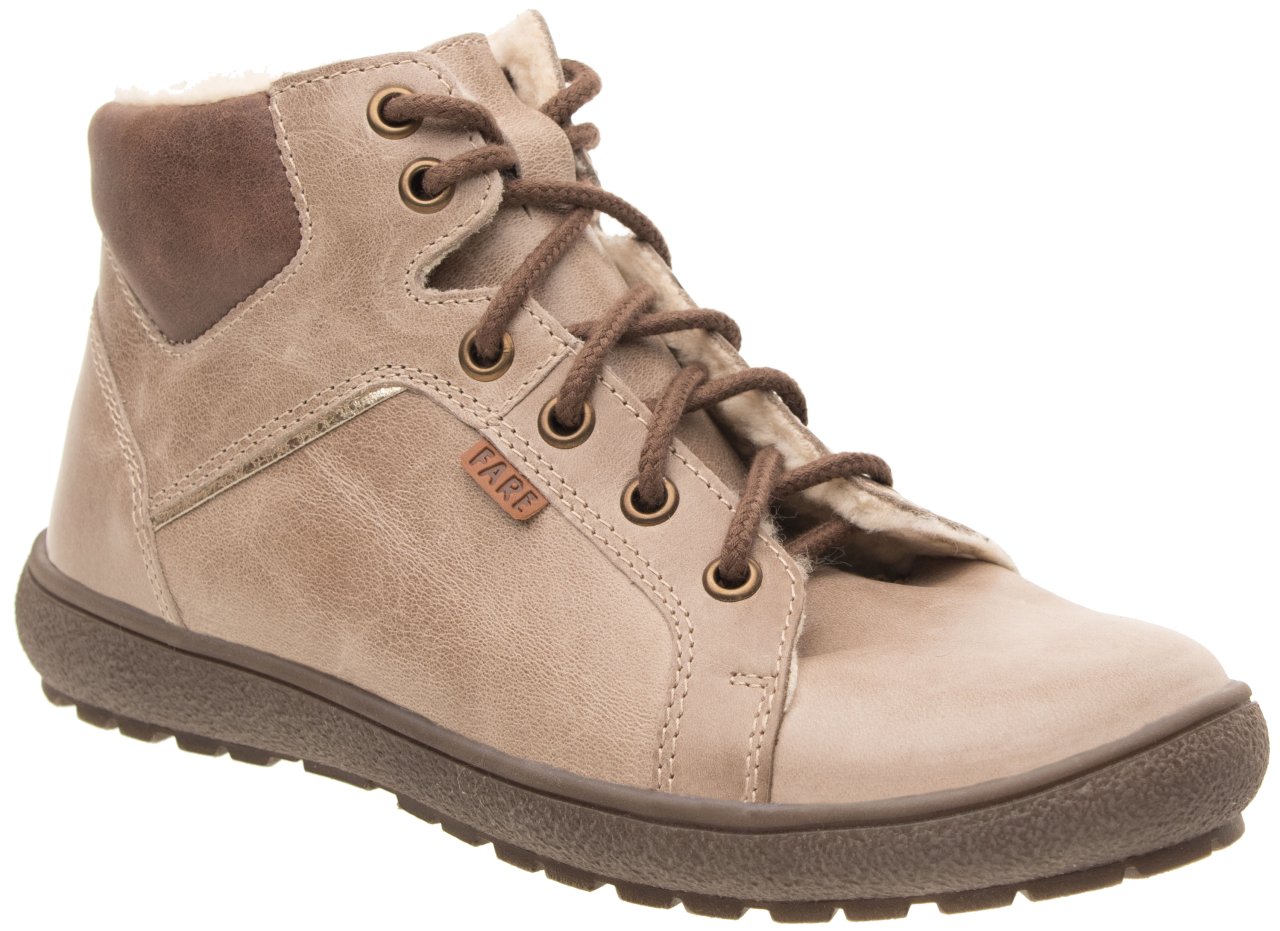 Zimní pevná kotníčková obuv, šněrovací. Vrchový materiál: přírodní hovězinová useň lícová hladká. Podšívka je zimní s hřejivým, středně dlouhým vlasem. Podešev je z termoplastického kaučuku, jehož složení splňuje parametry pro používání v zimním období. Předností je vyjímatelná vkládací stélka a pevný opatek i špice.