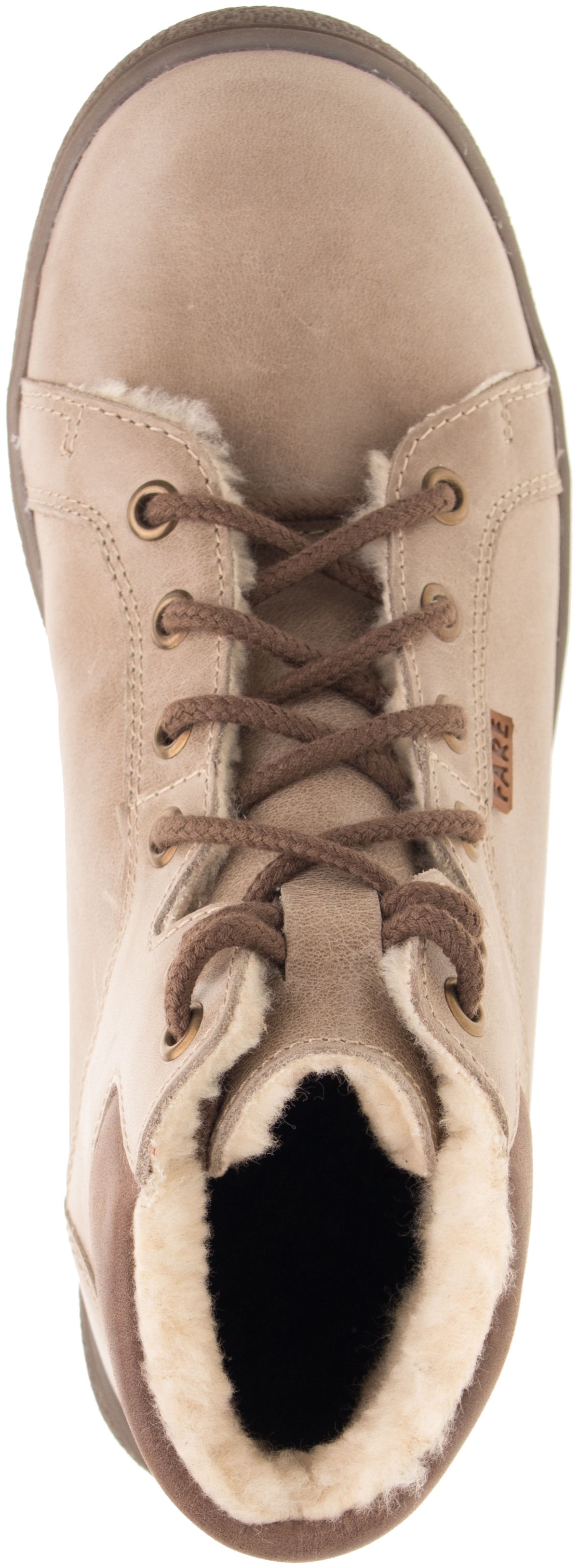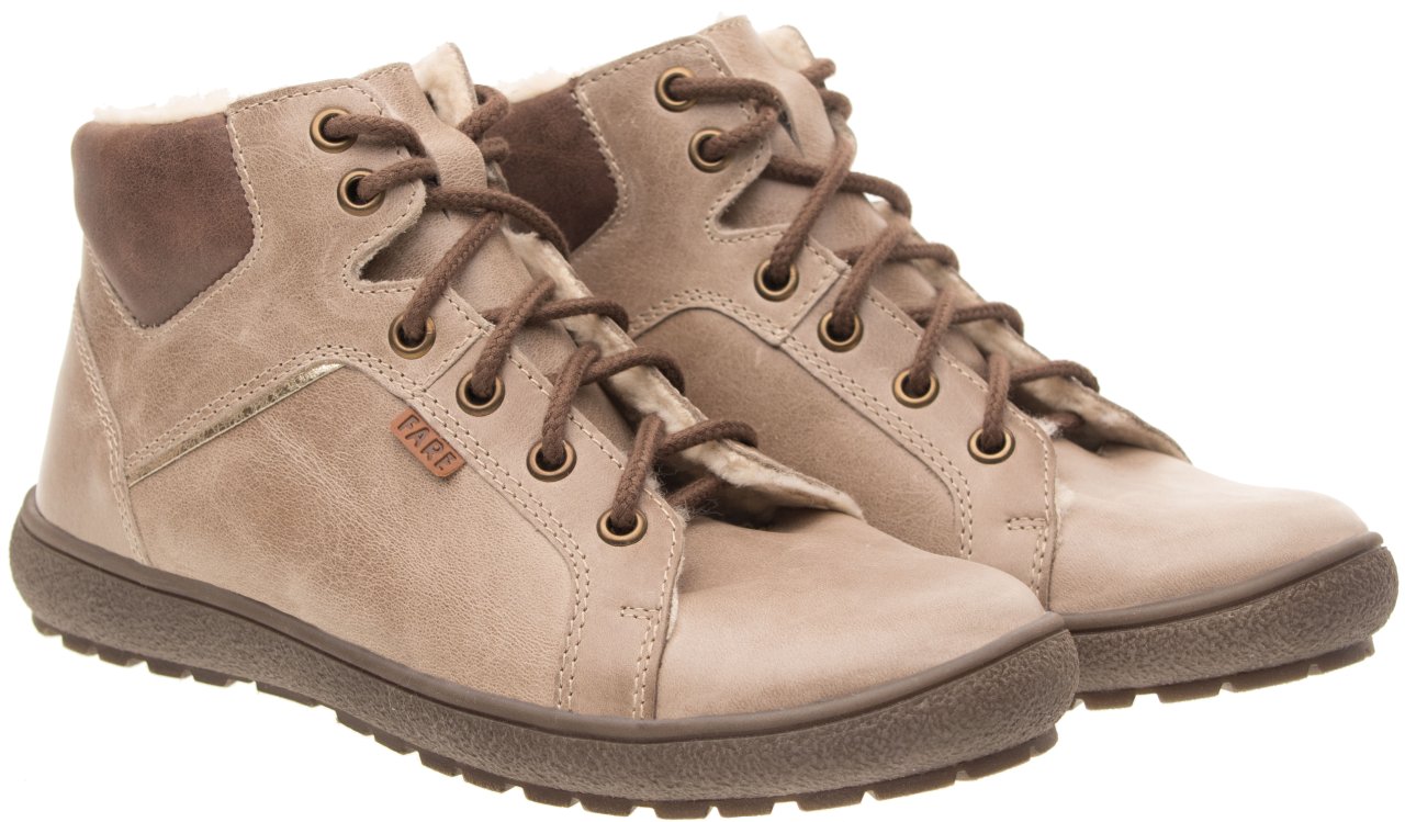 Zimní pevná kotníčková obuv, šněrovací. Vrchový materiál: přírodní hovězinová useň lícová hladká. Podšívka je zimní s hřejivým, středně dlouhým vlasem. Podešev je z termoplastického kaučuku, jehož složení splňuje parametry pro používání v zimním období. Předností je vyjímatelná vkládací stélka a pevný opatek i špice.