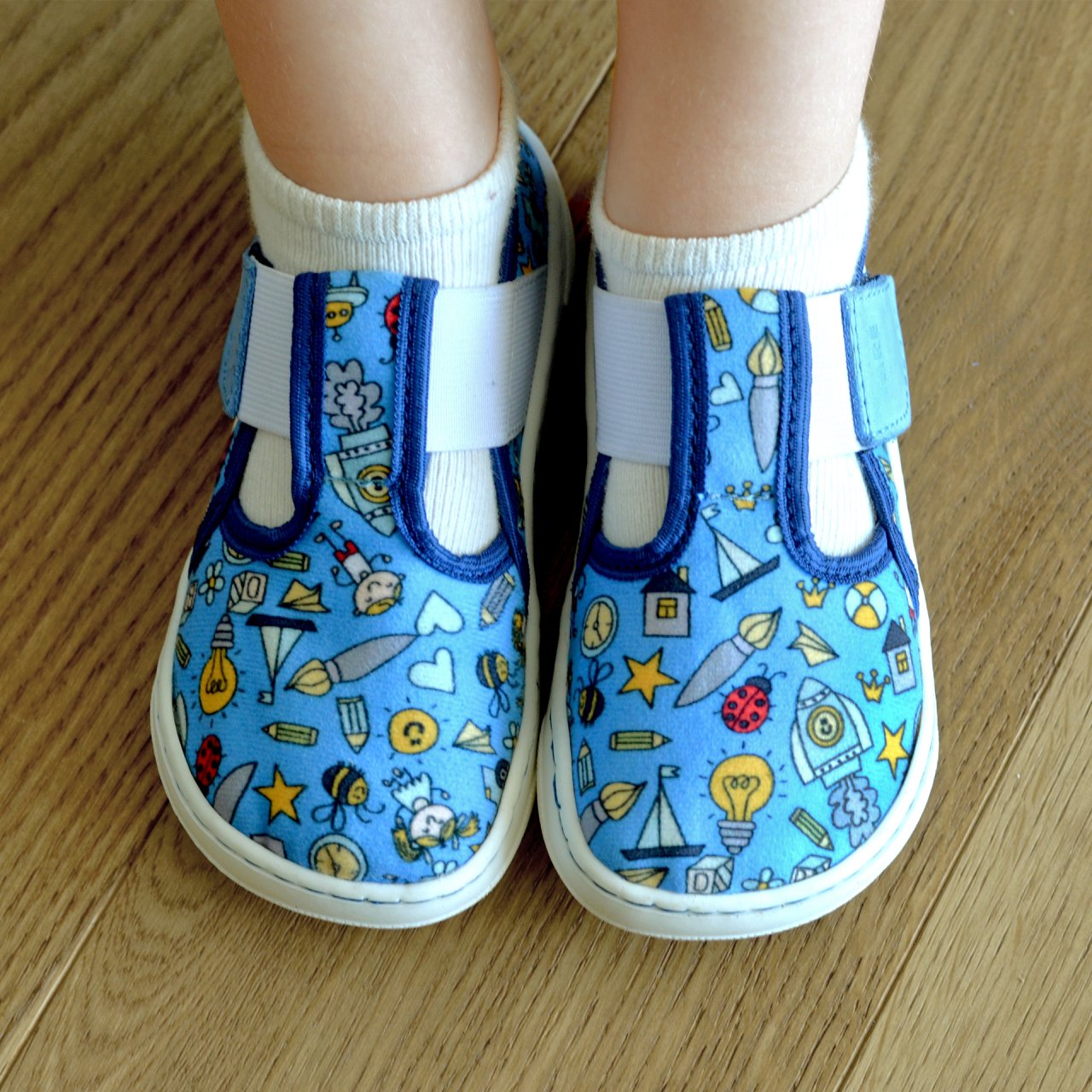 The textile upper is breathable and comfortable to wear. The removable insole with arch support contributes to walking comfort and, together with the regulating insole, allows individual adjustment according to the child’s needs. The fit is suitable for a medium-high instep and a medium-width heel, helping the foot sit correctly in the slipper.