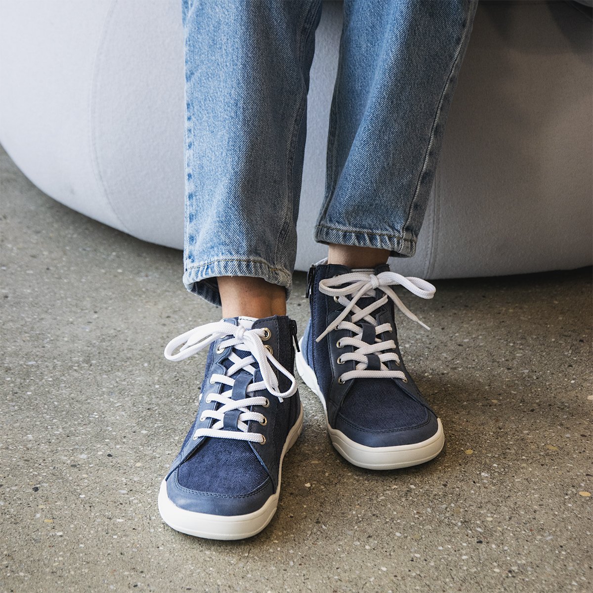 Flexibilní podešev FARESOLE DIXIE umožňuje přirozený pohyb chodidla při chůzi a poskytuje potřebnou míru ochrany při každodenním používání. Zapínání na zip usnadňuje obouvání, zatímco tkaničky umožňují přesné dotažení obuvi a přizpůsobení noze.