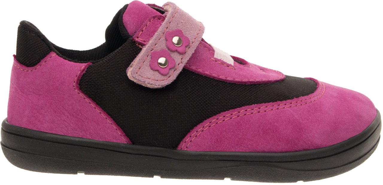 Flexibilní barefoot podešev FARESOLE VELA umožňuje přirozený pohyb chodidla při chůzi a podporuje jeho aktivní práci. Zapínání na suchý zip s gumičkou usnadňuje obouvání i zouvání a pomáhá přizpůsobit obuv tvaru nohy. Přirozený tvar obuvi je vhodný i pro děti, které preferují volnější, barefootově laděné obouvání.