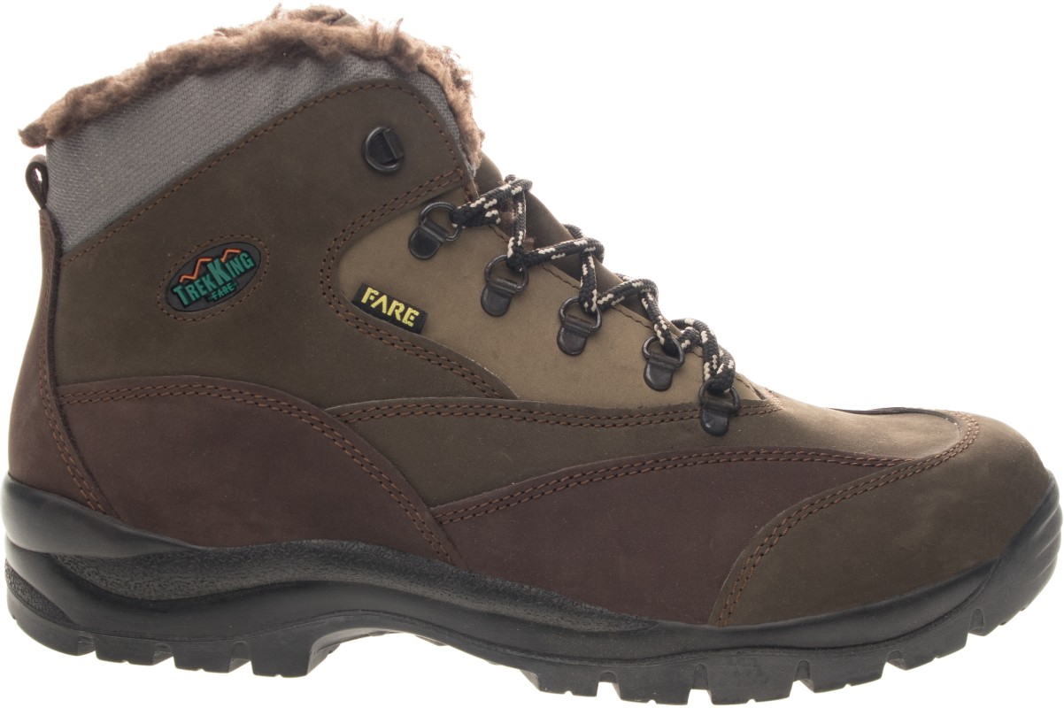 Zimní kotníčková obuv šněrovací, napodobenina trekové obuvi. Vrchový materiál - pravá kůže broušená v kombinaci s textilem. Podšívka je z hřejivého, vlasového materiálu. Podešev je z polyuretanu a pryže, která je velmi odolná vůči oděru . Předností je bandážování kotníků a límečku, vyjímatelná vkládací stélka a pevný opatek i špice. Obuv je opatřena nástřikem proti nasákavosti vody.