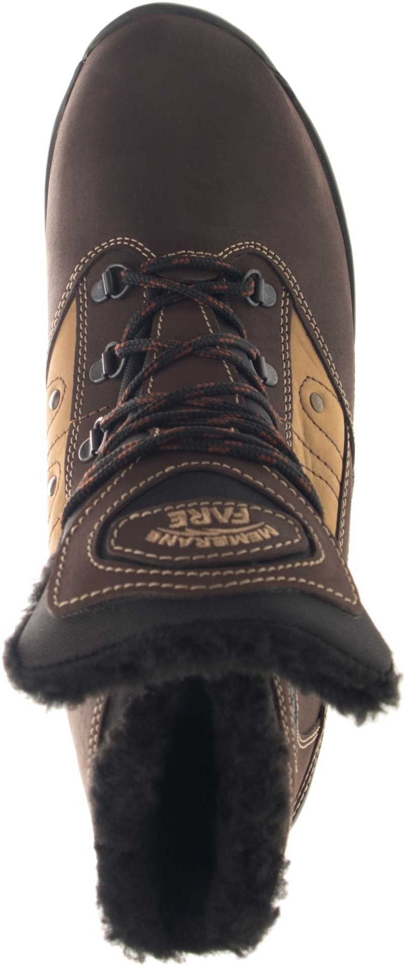 Zimní, treková, kotníčková obuv šněrovací. Vrchový materiál - pravá kůže broušená v kombinaci s textilem. Podšívka je z hřejivého, vlasového materiálu. Díky speciální membráně, která je mezi vrchem a podšívkou, zůstává noha suchá a dobře klimatizovaná. Podešev je z polyuretanu a pryže, která je velmi odolná vůči oděru. Předností je bandážování kotníků a límečku, vyjímatelná vkládací stélka a pevný opatek i špice. Obuv je opatřena nástřikem proti nasákavosti vody.