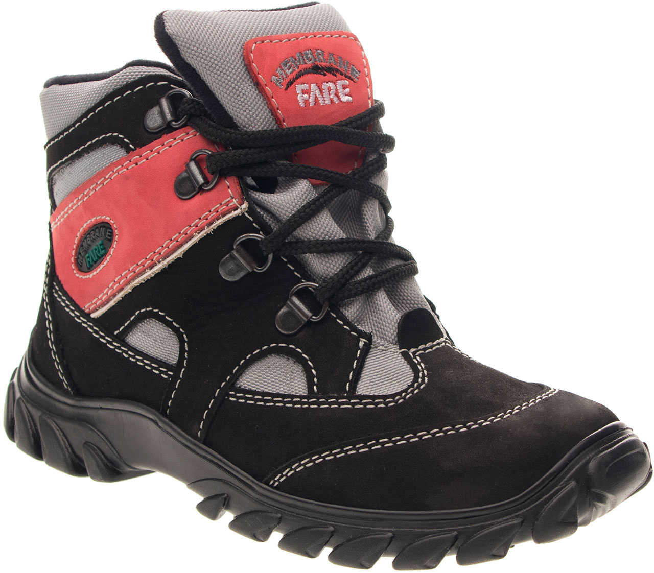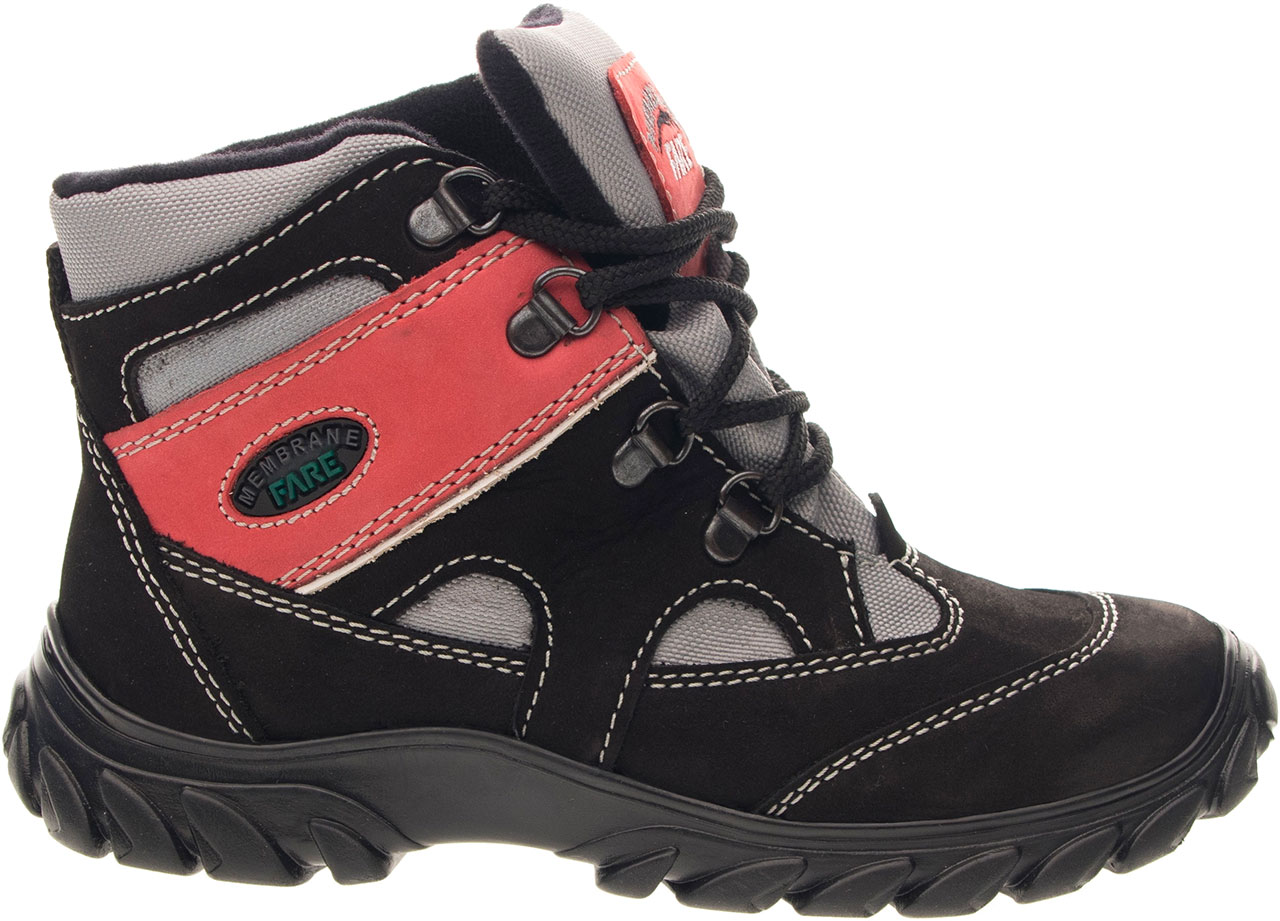 Celoroční, treková, kotníčková obuv šněrovací. Vrch je vyroben z hovězinového nubuku v kombinaci s textilem, vnitřek obuvi je z textilního podšívkového materiálu s výbornými sacími schopnostmi. Díky speciální membráně, která je mezi vrchem a podšívkou, zůstává noha suchá a dobře klimatizovaná. Podešev je z termoplastického kaučuku s módním dezénem, vyvýšená část podešve v přední části chrání špici při běžném zakopávání. Předností je bandážování kotníků a límečku, vyjímatelná vkládací stélka a pevný opatek i špice. Obuv je opatřena nástřikem proti nasákavosti vody.