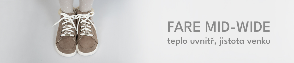 Produktová řada FARE MID-WIDE je navržena tak, aby poskytovala maximální pohodlí a prostor pro dětské nohy. Díky svému středně širokému střihu je ideální volbou pro děti, které potřebují více místa v oblasti prstů. Tyto boty kombinují styl, funkčnost a pohodlí. Konstrukce vychází z osvědčených modelů FARE KLASIK, ale nabízí větší volnost a flexibilitu díky inovativní podešvi, která je ohebná. Zimní modely mají podešev o tloušťce 4–6 mm. Merino stélku o výšce 2 mm.