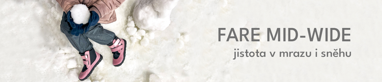 Produktová řada FARE MID-WIDE je navržena tak, aby poskytovala maximální pohodlí a prostor pro dětské nohy. Díky svému středně širokému střihu je ideální volbou pro děti, které potřebují více místa v oblasti prstů. Tyto boty kombinují styl, funkčnost a pohodlí. Konstrukce vychází z osvědčených modelů FARE KLASIK, ale nabízí větší volnost a flexibilitu díky inovativní podešvi, která je ohebná. Zimní modely mají podešev o tloušťce 4–6 mm. Merino stélku o výšce 2 mm a nepromokavou membránu.